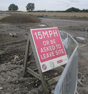 We encountered a sign indicating that the route had been changed, directing us to turn right rather than go straight to a tunnel under a motorway. Norm could see on the GPS map that there was another trail leading to the tunnel, so we just took the turn to the right. Where the "other" path should have been, there was no sign of a path in any direction, but we were almost to a busy road that had a nice walking path. We needed to get under or over that motorway, and it seemed certain that this road would have a suitable bridge, so we followed the road. Soon another Coast to Coaster caught up with us and confirmed the tunnel is closed and for the foreseeable future we were on the official route. We passed a large construction site and saw the sign below. The English are so polite.